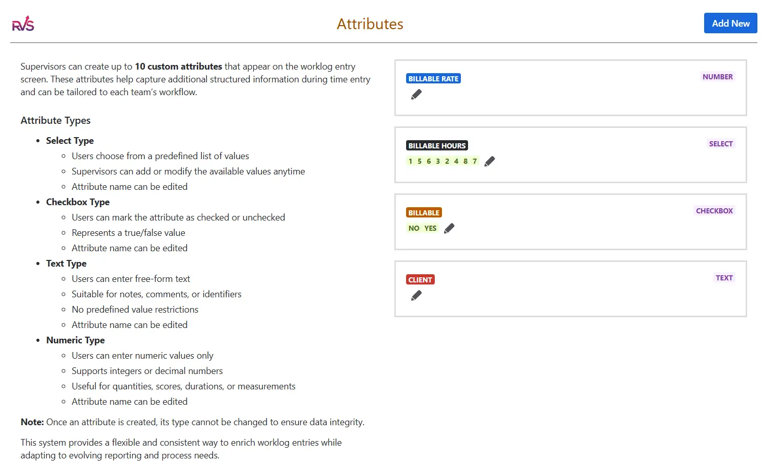 Create a "Billable Status" attribute configured as a dropdown with two options: Billable and Non-Billable. Mark it as a required field so no entry slips through without a tag.