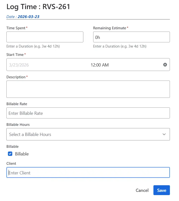 The result is that every worklog carries metadata your team actually needs: which client it's for, whether it's billable, what activity type it represents, and more.