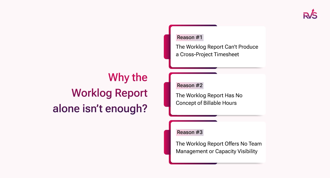 Here’s the reality: the worklog report in Jira was never meant to act as a full timesheet. It’s a lightweight reporting tool, not a system for billing, capacity planning, or team management.