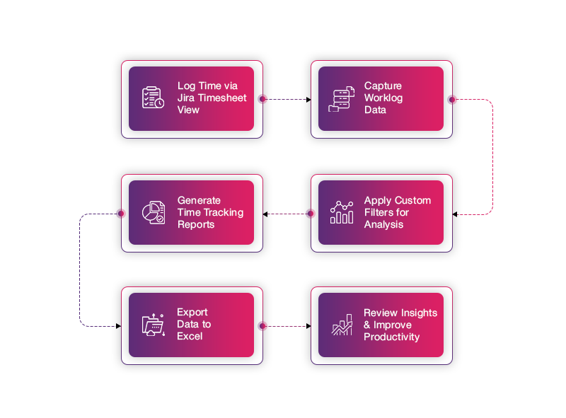 Start tracking hours automatically with work log timesheet features. Each Jira issue’s progress is recorded in real-time, eliminating manual updates.